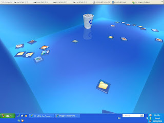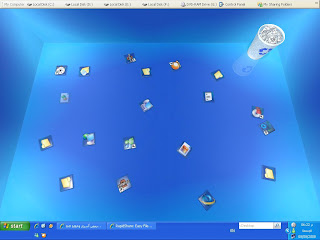 برانامج حلو كتير بخلي ايقونات سطح المكتب على شكل قطع زجاج مع امكانيه حملها وتدويرها وتغيير مكانها بشكل عشوائي مع تأثيرات صوت متناسقه ومدهشه وتغير زاوية العرض حسب الرغبه واظهار الصوره الاصليه لسطح المكتب على شكل برواز معلق على الحيط